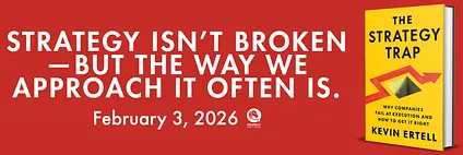 - I had the opportunity to be an advanced reader for the upcoming book by my friend Kevin Ertell The Strategy Trap. He has done an excellent job at simplifying an otherwise complex subject, that people with decades of experience still do not understand. The book is well researched (which I like) and full of relatable stories. Follow Kevin Ertell and his newsletter The Strategy Trap Newsletter!